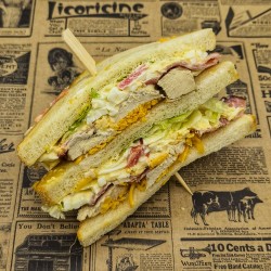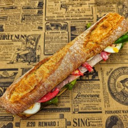 Sandwich parisien : jambon blanc, mayonnaise, œufs, tomate, salade