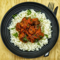 Pain baguette, Mayonnaise, Poulet curry, tomate, salade, oignons rouge