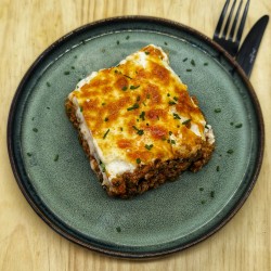 * bolognaise de bœuf, béchamel, cèleri, carotte, oignon, ail, tomate, thym, laurier