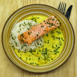 gingembre, garam massala, citron vert, oignon, ail, yaourt, concentré de tomate, lait de coco coriandre, cacahuètes et riz"