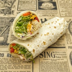 Wrap Rico : poulet sauce piquante (NOUVELLE RECETTE) Poulet mariné (ail, oignon, paprika, poudre piment doux) oignon rouge en lamelles, poivron rouge, cheddar, sauce piquante : Yaourt, mayo sriracha, ail, coriandre , jus de citron