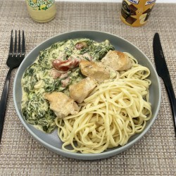 VG: Ravioles épinard / ricotta, coulis de tomate au basilic frais, crème de burrata et parmesan