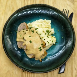 *paprika, moutarde, vin blanc, oignon, crème, champignon