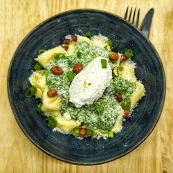 Salade chorizo, pâtes pesto, pignons, parmesan, tomates confites, olives noires