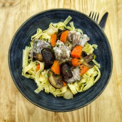 Blanquette de veau à l'ancienne* sans porc et pates