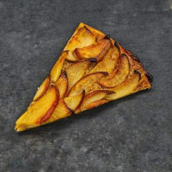 jambon blanc, cheddar, crème et emmental râpé. Servie sans salade.