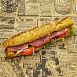 Bacon, smokey bacon épicé, emmental, salade, tomate, oignons rouge