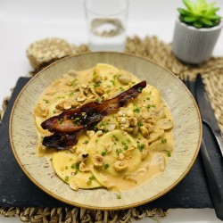 LE MONTAGNARD: croque-monsieur au jambon blanc, crème, fromage à raclette, cheddar.