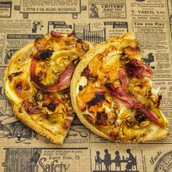 Jambon cru, parmesan, poivrons confits grillés, tomatade et salade