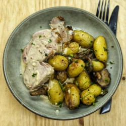 Mijoté de lapin à la crème de moutarde de meaux* et riz