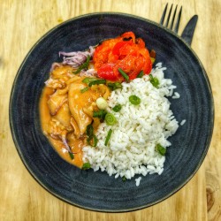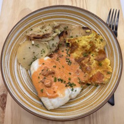 Pâtes sauce crémeuse chorizo, poulet et crevettes sautés à l'aneth et paprika, parmesan, zeste de...