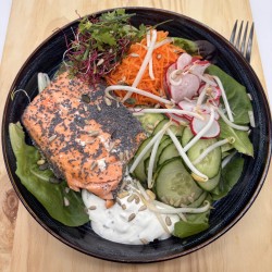 Salade, Mozzarella, Avocat , Jambon cru, Olives, tomates cerises
