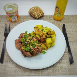 Asado de bœuf Argentin (bœuf mariné, grillé) chimichurri ,pomme de terres rôties persillées,...